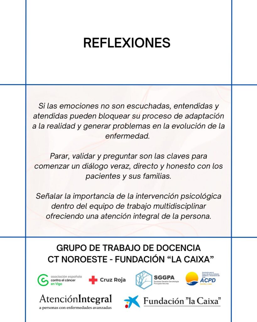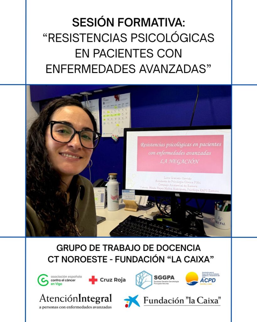 El pasado 28 de enero se retomaron las sesiones formativas organizadas por el Grupo de Trabajo de Docencia de la Comisión Territorial Noroeste del Programa para la Atención Integral a Personas con Enfermedades Avanzadas y sus Familias de la Fundación “la Caixa”.